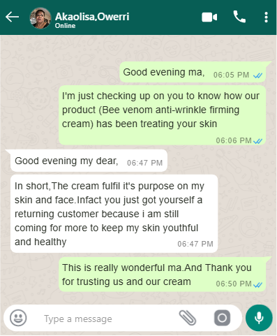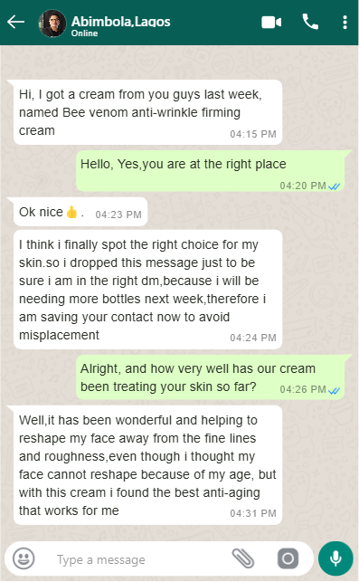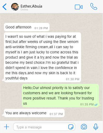 Give Bee venom anti-wrinkle firming cream a try and see the difference it would bring to your life. If at any time you are not happy with Bee venom anti-wrinkle firming cream, just send back your empty jars and we will refund you immediately. No questions asked. We pride ourselves in our product and service and want you to be absolutely satisfied.